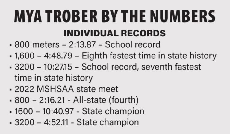 When Mya Trober arrived at Blue Springs South High School four years, she was on the fast track to becoming a star on the girls soccer team. “I guess soccer’s loss is our gain,” quipped South girls track and field head coach Ryan Unruh, as Trober went on to unparalleled success as a junior and senior member of both the cross country and track and field teams.