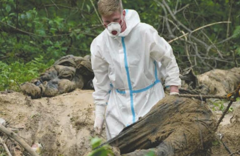 BUCHA, Ukraine (AP) — The lush green beauty of a pine forest with singing birds contrasted with the violent deaths of newly discovered victims of Russia’s war in Ukraine, as workers exhumed bodies from another mass grave near the town of Bucha on Kyiv’s outskirts.