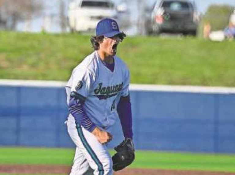 The spotlight was shining brightly on Blue Springs South catcher Gannon Grieb in the bottom of the ninth inning of a 2-2 thriller against Grain Valley. Jaguars reliever Cole Chace opened the inning with a triple – aided by a turf bounce that kept Grain Valley outfielders from grabbing the ball to prevent extra bases.