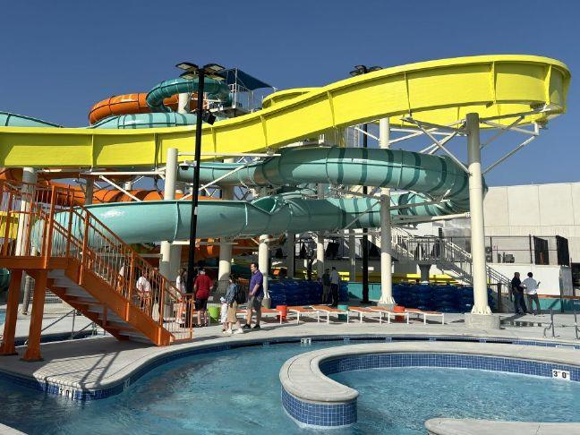 Citizens had a chance to tour Blue Surf Bay after city of Blue Springs' opening ceremony Thursday for the water park. Both the water park's indoor and outdoor pools opened to the public for the first time Friday. [Mike Genet/The Examiner]