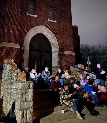 About 20 former members of the shuttered St. Cyril Catholic Church in Sugar Creek gathered on the church stairs Monday night to pray, sing Christmas carols and recite the story of Jesus’ birth.