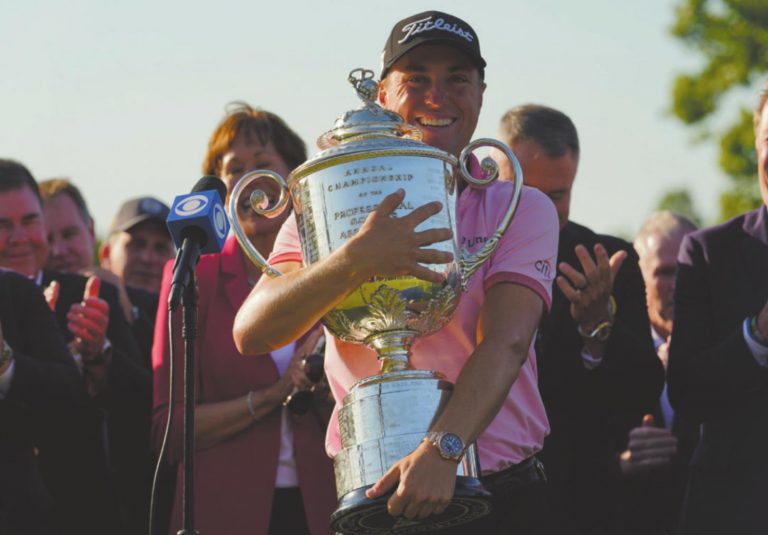 TULSA, Okla. — Justin Thomas wrapped his arms around the 27-pound Wanamaker Trophy after winning his second PGA Championship, and thousands of fans ringing the 18th green amid the setting sun at Southern Hills showered him in adulation.