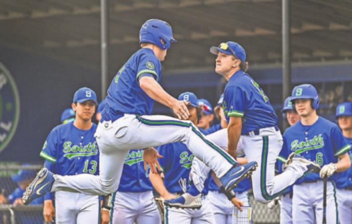 As he left the dugout to pitch against rival Blue Springs in the top of the seventh inning, Blue Springs South starter John Chambers cast a glance to the left field scoreboard. “I knew I didn’t have many pitches left, and I really wanted that complete-game shutout,” said Chambers, who coaxed a 4-6-3 double play from the last batter he was allowed to face to set off a celebration on the field following a 6-0 victory that ended South’s four-game losing streak.