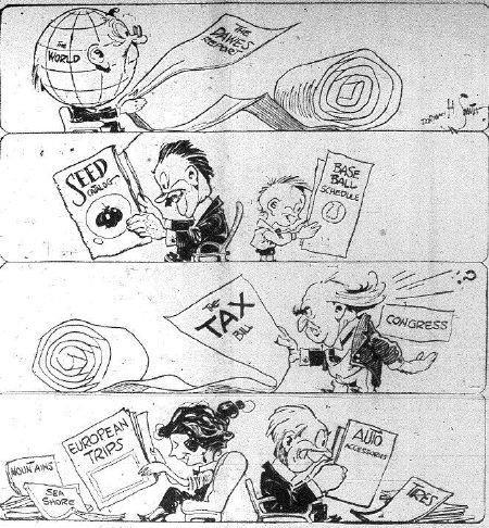 One hundred years ago, page one photos were rare in The Independence Examiner, but on most days there was a cartoon at the top of the page. They tended to have wry observations about daily life or comment on politics. This one, from 100 years ago this week, did some of each. The Dawes plan referred to was the effort to extend but lower the reparations Germany was paying from World War I. That eased a major diplomatic and military crisis in Europe.
