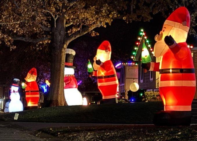 Alger Lane in the Lake Village neighborhood of southern Blue Springs has been renamed Santa Claus Lane for the month, as many citizens there and nearby streets have lined front yards with giant inflatable Santas, snowmen and other seasonal figures. [Mike Genet/The Examiner]