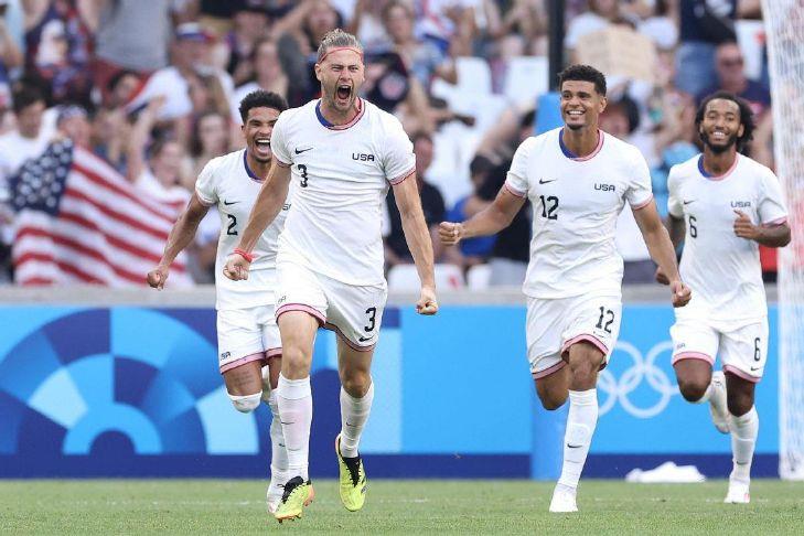 Team USA's Walker Zimmerman (3) celebrates after scoring his team's second goal during a group stage win over New Zealand in the Olympics in Marseille, France. The Americans have made the Olympic knockout stage for just the second time since 1956 and face Morocco in a quarterfinal Friday. Photo Credit: Alex Livesey/Getty Images/TNS