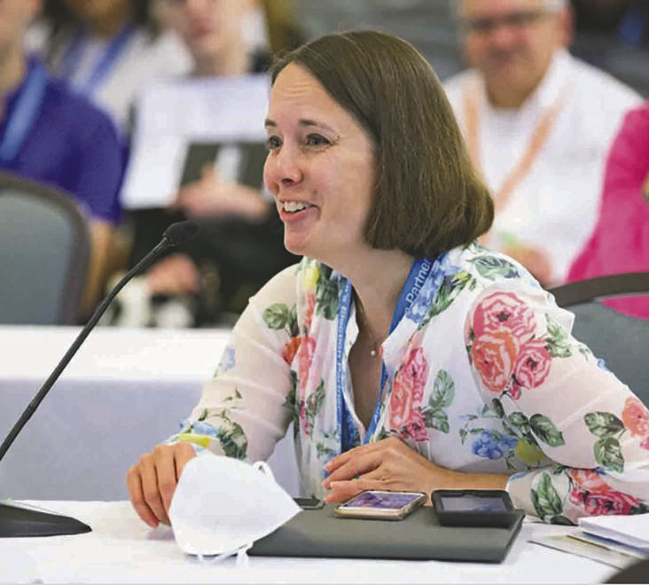 Maine Secretary of State Shenna Bellows attends the summer conference of the National Association of Secretaries of State in Baton Rouge, La., on July 8, 2022. One of the strictest internet privacy laws in the United States has withstood a legal challenge, as a group of telecommunication providers has dropped its bid to overturn the Maine standard on Sept. 2, 2022. The Maine Legislature passed the bill, proposed by former Democratic state Sen. Bellows in 2019. (AP PHOTO/ MATTHEW HINTON)