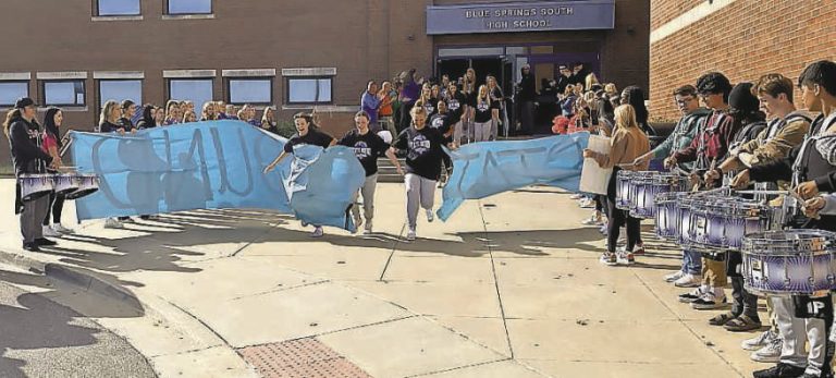 By Bill Althaus bill.althaus@examiner.net Cheerleaders, members of the Blue Springs South Jaguar Pride drum line, students, teachers, administrators and parents greeted coach Kristi Williams’ Jaguar…