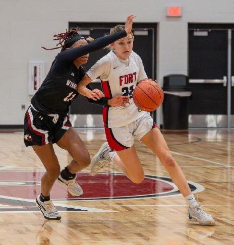 Fort Osage's Makenna Simons, right, drives past Winnetonka defender Zion Robinson Tuesday at Fort Osage. Simons scored 20 points to lead the Indians to a 65-57 win. Photo Credit: David M. Rainey/Special to The Examiner