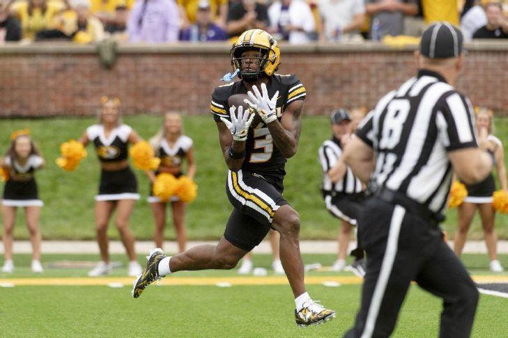 Missouri wide receiver Luther Burden III catches a touchdown pass during last week's upset of No. 15 Kansas State. Burden and the Tigers look to keep the momentum going when they face the Memphis Tigers in St. Louis Saturday. Photo Credit: L.G. Patterson/AP