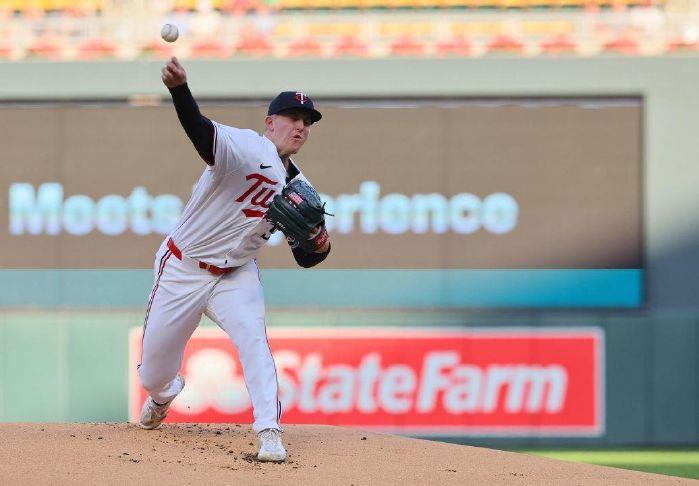 Zebby Matthews of the Minnesota Twins makes his MLB debut in the first inning against the Kansas City Royals Tuesday at Target Field in Minneapolis. Matthews allowed two runs in five innings and the Twins routed the Royals 13-3. Photo Credit: Adam Bettcher/Getty Images/TNS