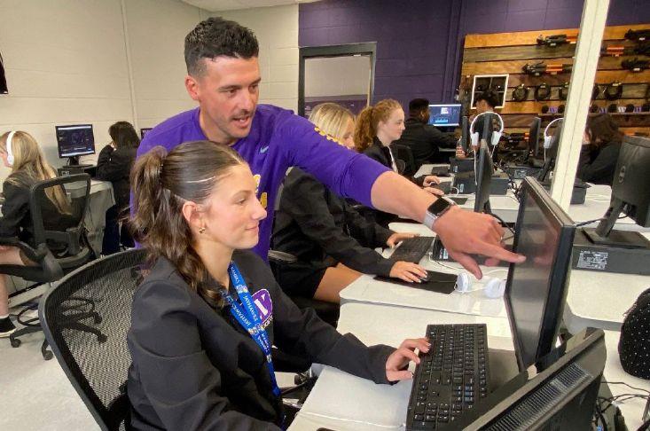 Blue Springs High School video production and broadcast teacher Matt Marble goes over the Wildcat TV production schedule with Camryn Blackwell, who is a part of the Wildcat TV team that won the second All-Missouri Award the University of Missouri J-Day in school history. Blackwell plans to study mass communications and sports media at the University of Kansas this fall. [Bill Althaus/The Examiner]
